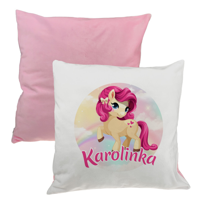 Pluszowa poduszka "Kucyk Pony" - personalizacja - podaj imię- różowy tył.