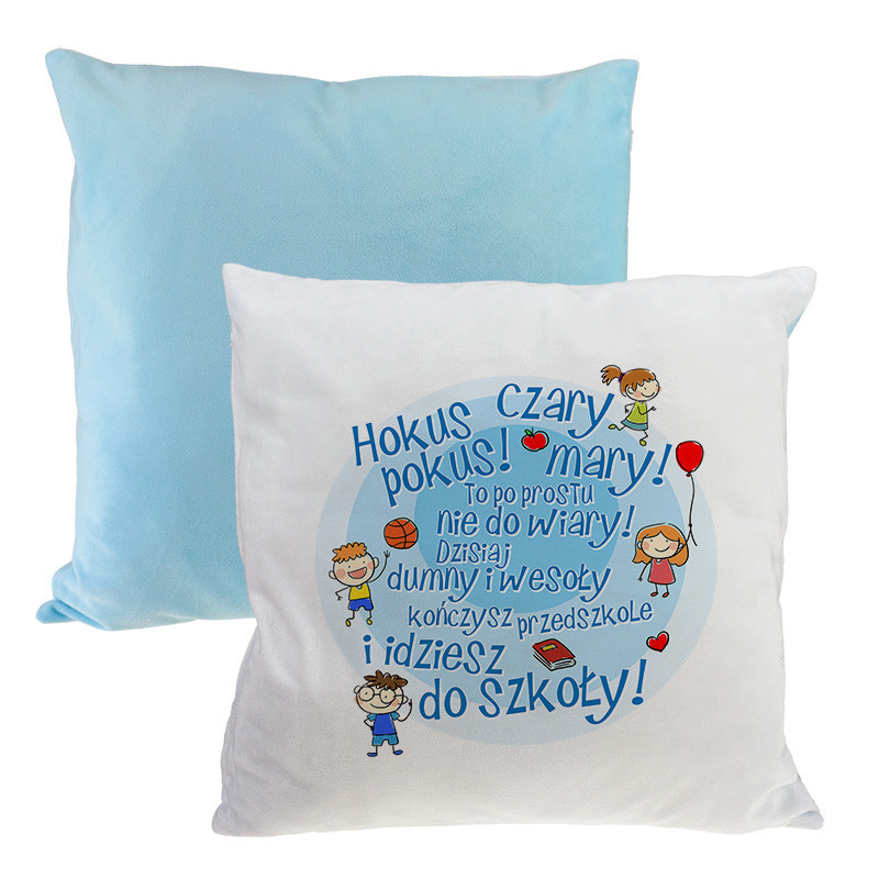 Pluszowa poduszka na zakończenie przedszkola- dla przedszkolaka- niebieski tył.