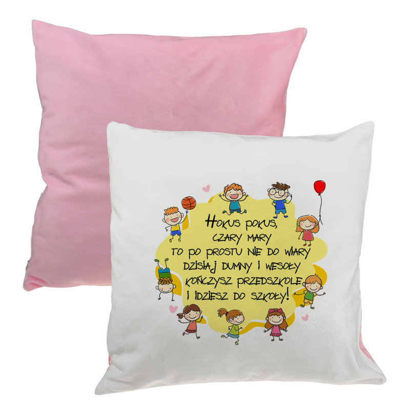 Poszewka na zakończenie przedszkola- dla przedszkolaka- różowy tył.