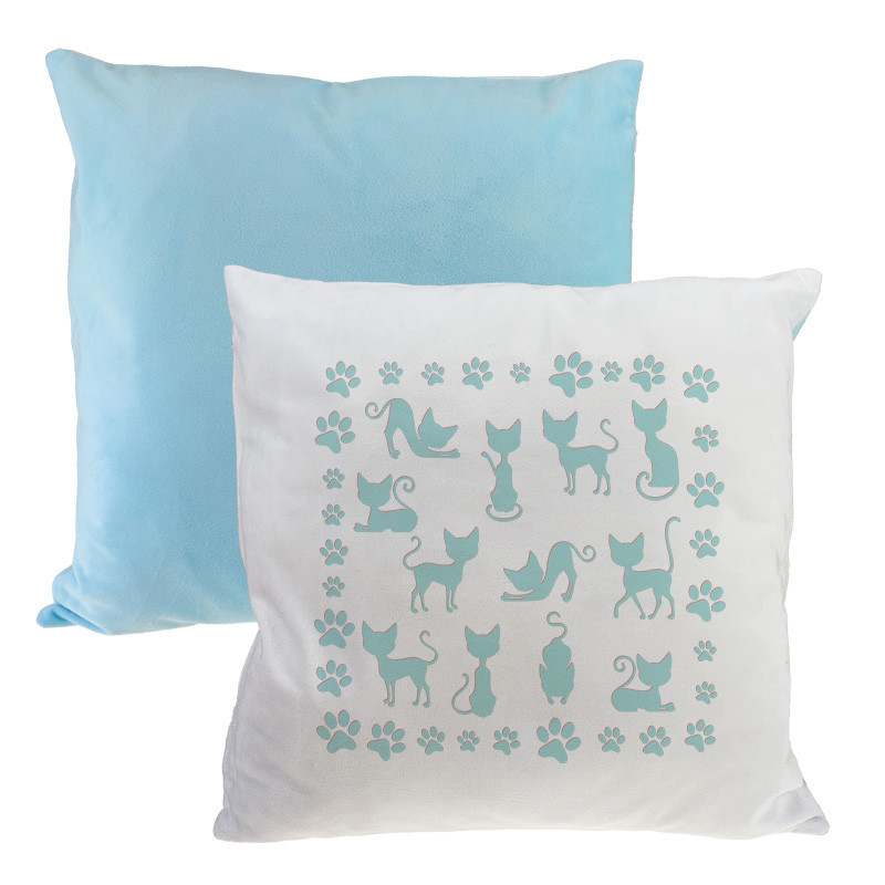 Pluszowa poduszka "Koty" - różowy lub niebieski wzór i tył poduszki.