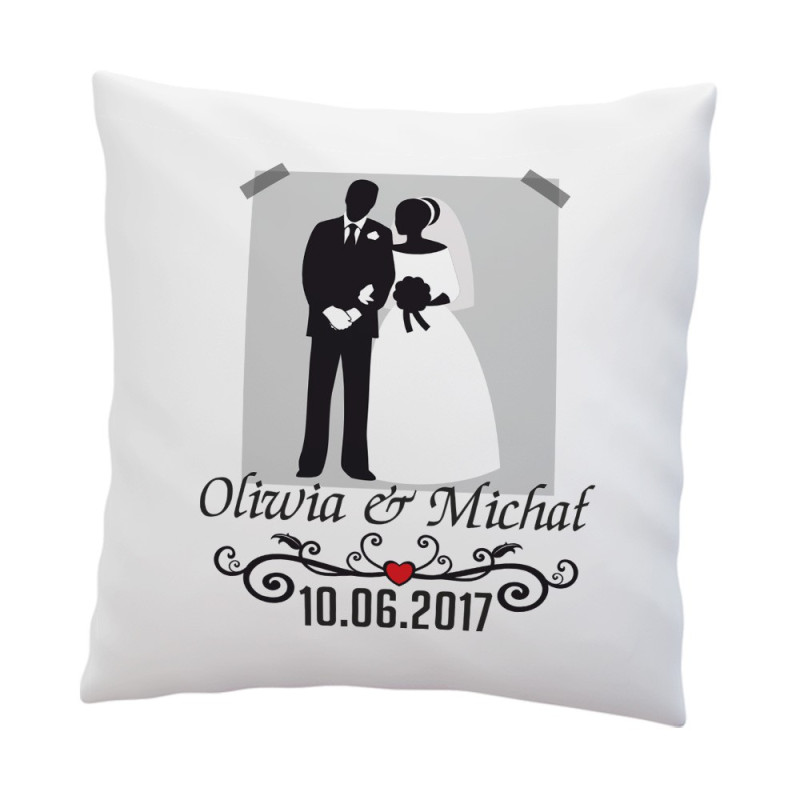 Poduszka dla Nowożeńców z imionami oraz datą ślubu- super prezent z okazji Ślubu - wzór 2.