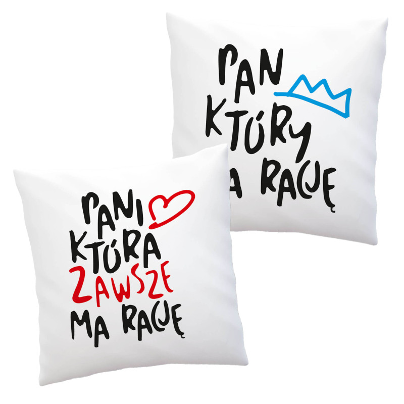 Zestaw poduszek - Pan, który ma rację i Pani, która ma zawsze rację.