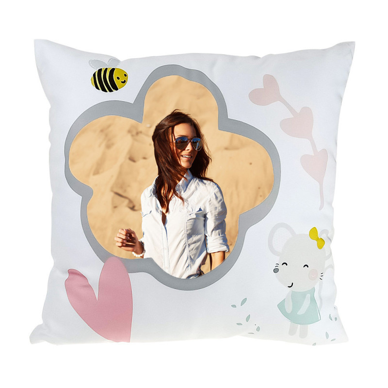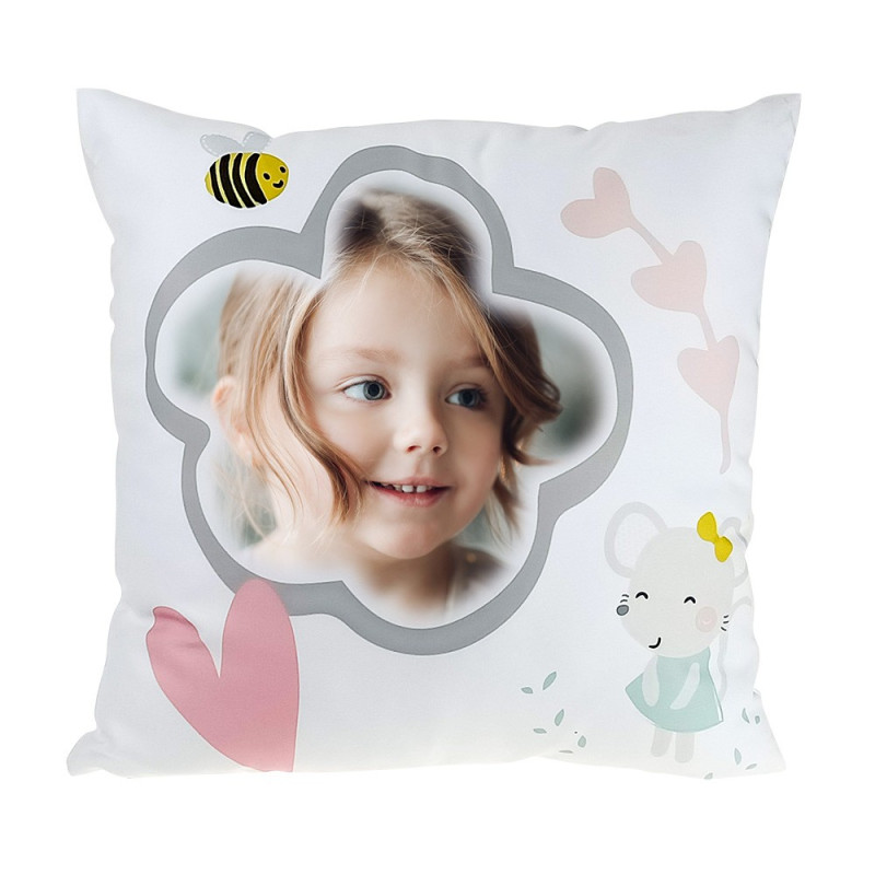 Super poduszka dla prawdziwej małej księżniczki - Just for You - cała zabarwiona w pastelowe motywy, a z drugiej strony miejsce na Twoje zdjęcie. Spraw fajny prezent małej księżniczce.