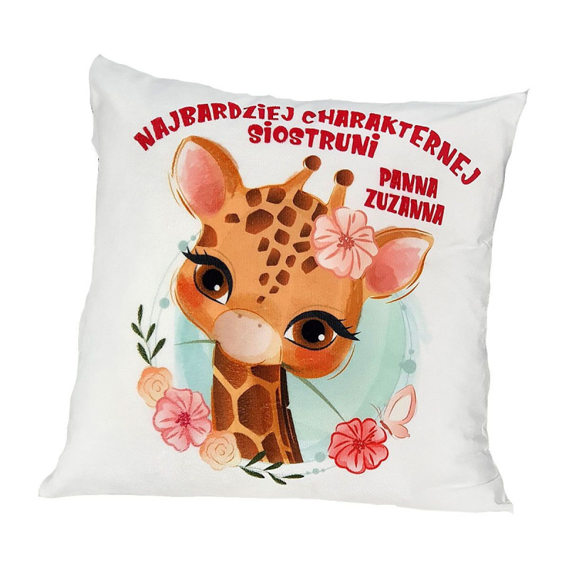 Super poducha dla przedszkolaka, dziewczynki. Na pewno każdy przedszkolak chętnie przytuli się do takiej podusi. Personalizacja imieniem uczyni ją wyjątkową i jedyną, specjalną dla naszego malucha. Do kompletu dokupisz u nas: worek na kapcie, pojemnik na kredki, plecak