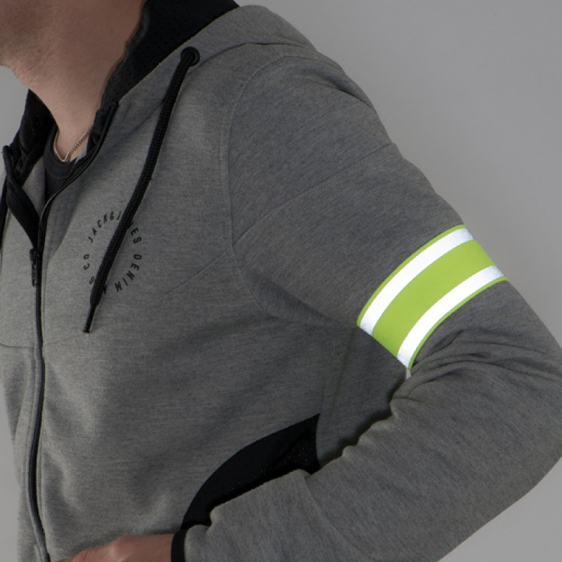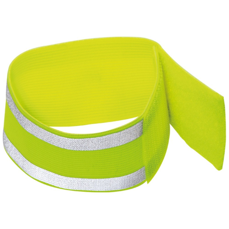 Materiałowa opaska odblaskowa na rękę- dbaj, aby być dobrze widocznym na drodze.