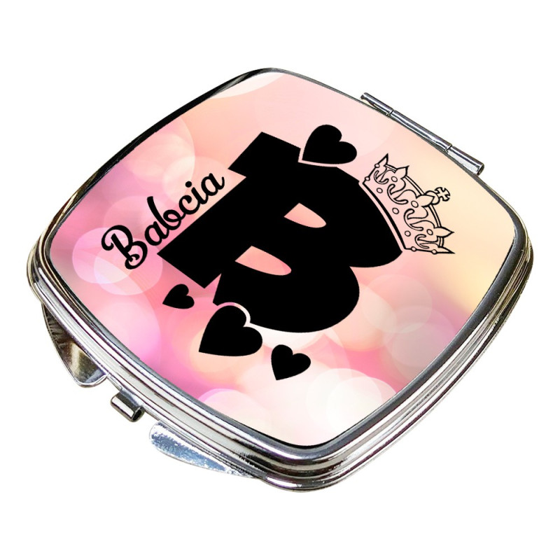Szukasz prezentu dla Babci z okazji Dnia Babci? Metalowe kompaktowe, lusterko z nadrukiem grafiki oraz personalizacją imieniem będzie idealnym, unikalnym pomysłem.  Świetna dedykacja mile zaskoczy obdarowaną osobę. Wszak małe lusterko jest niezbędnym elementem wyposażenia kobiecej torebki. Lusterko pięknie zapakujemy w woreczek z organzy, a Ty już nie musisz myśleć o pakowaniu tylko je wręczysz. Lusterko będzie wspaniałym pomysłem na prezent na Dzień Babci, ale także na wszelkie inne okazje: urodziny, imieniny, święta. Będzie super pamiątką na długie lata. Do kompletu dokupisz u nas kosmetyczkę z tym samym nadrukiem.