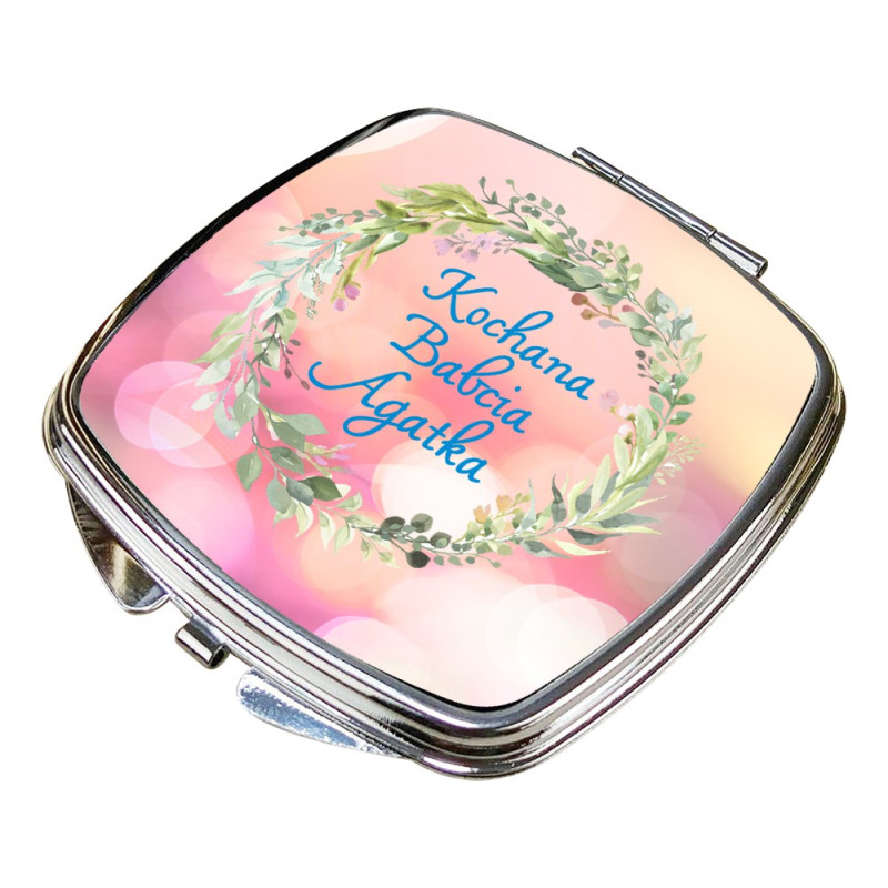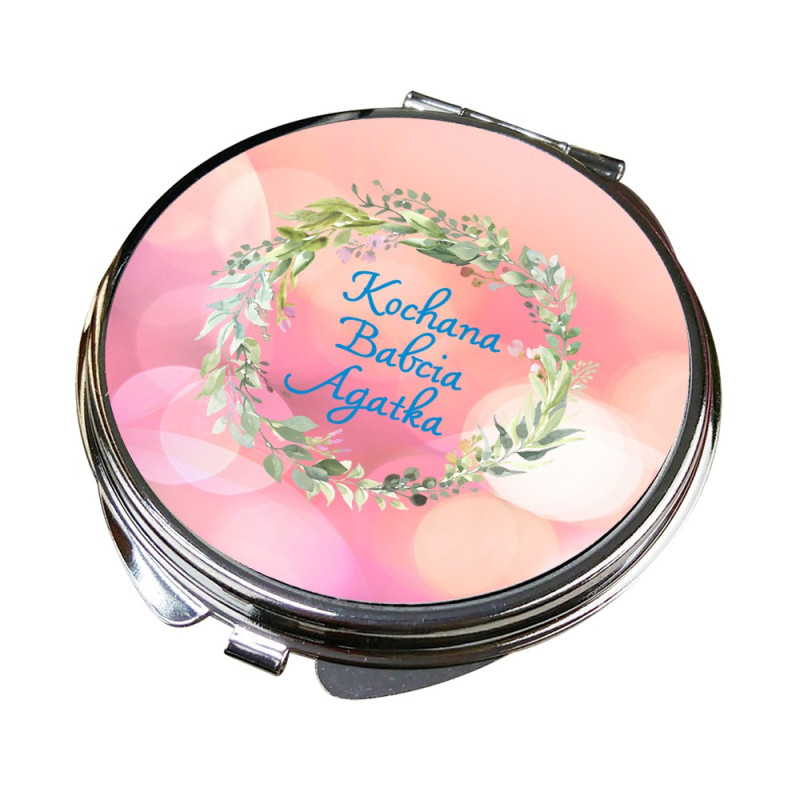Szukasz prezentu dla Babci z okazji Dnia Babci? Metalowe kompaktowe, lusterko z nadrukiem grafiki oraz personalizacją imieniem będzie idealnym, unikalnym pomysłem. Świetna dedykacja mile zaskoczy obdarowaną osobę. Wszak małe lusterko jest niezbędnym elementem wyposażenia kobiecej torebki. Lusterko pięknie zapakujemy w woreczek z organzy, a Ty już nie musisz myśleć o pakowaniu tylko je wręczysz. Personalizowane lusterko będzie wspaniałym pomysłem na prezent na Dzień Babci, ale także na wszelkie inne okazje: urodziny, imieniny, święta. Będzie super pamiątką na długie lata. Do kompletu dokupisz u nas kosmetyczkę z tym samym nadrukiem.
