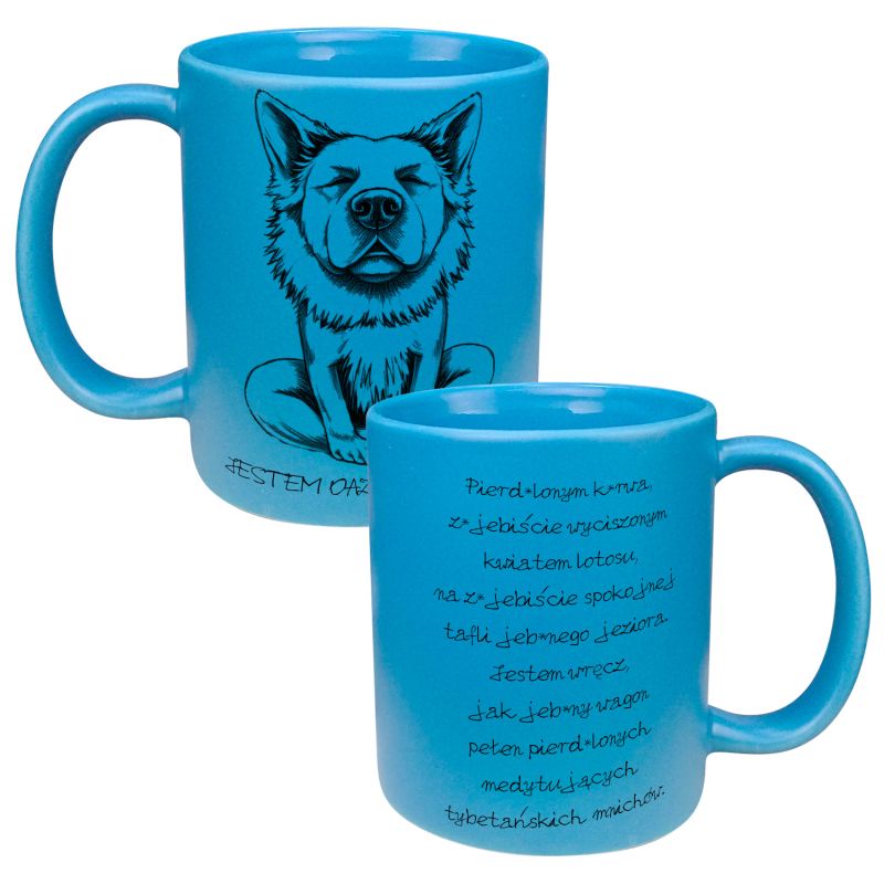 Matowy kolorowy kubek specjalnie dla nerwowej osoby "Jestem oazą spokoju"- śmieszny prezent.