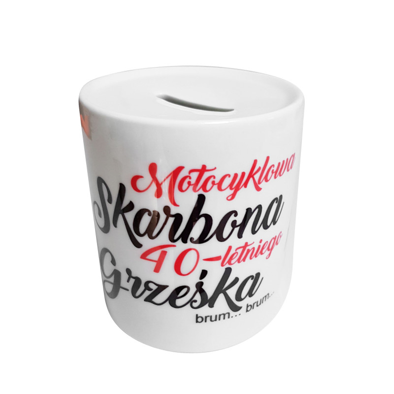Urocza skarbonka na oszczędności, to świetny pomysł na oryginalny prezent dla mężczyzny, który kocha motocykle. Skarbonka posiada nadruk, który idealnie oddaje klimat szybkiej jazdy. Na pewno wpadnie w oko nie jednemu motocykliście, zachwyci się śmiesznym napisem oraz wrzuci coś do środka. Skarbonka wykonana jest z wysokiej jakości, białej ceramiki. Na spodzie wycięto otwór, zamykany przy pomocy plastikowej zatyczki. Dzięki niemu w dowolnym momencie można wyjąć oszczędności bez uszkadzania skarbonki. Idealnie sprawdzi się jako prezent z okazji urodzin, pod choinkę oraz na każdą inną okazję.