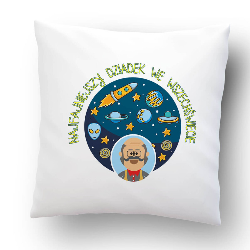 Poduszka dla dziadka z grafiką "Najfajniejszy dziadek we wszechświecie" -  to idealny prezent dla bliskich Ci osób.