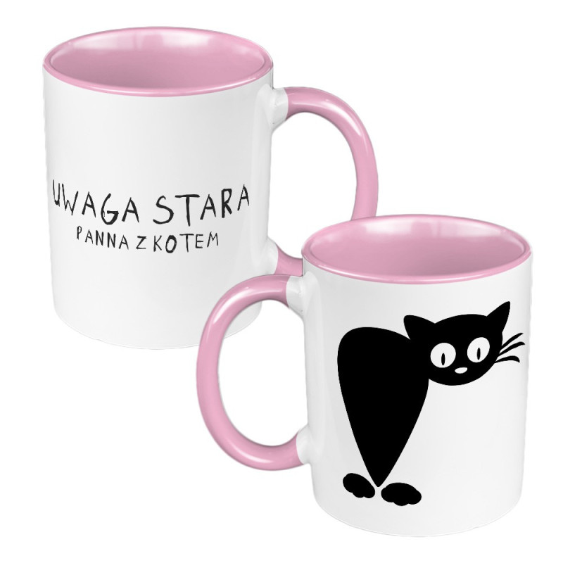 Kubek 330 ml kolorowy z nadrukiem "Stara panna z kotem".