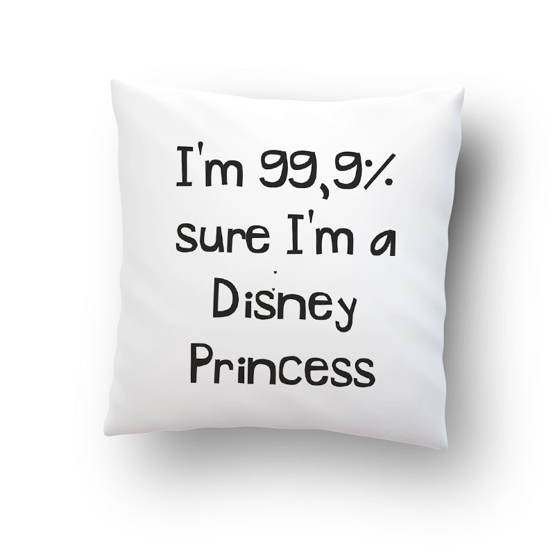 "I'm 99,9% sure I'm a Disney Princess" poduszka rozm.  40 x 40cm, mikrofibra  -  to idealny pomysł na prezent dla dziewczyny, na urodziny, święta lub inne okazje.