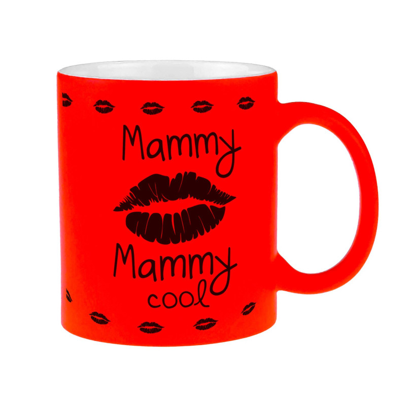 Kubek neonowy (fluorescencyjny) z nadrukiem (sublimacja).