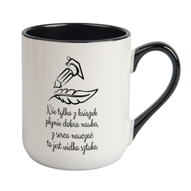Kubek kawowy duży 330ml z kolorowym uszkiem i wnętrzem dla nauczyciela- "Pióro".