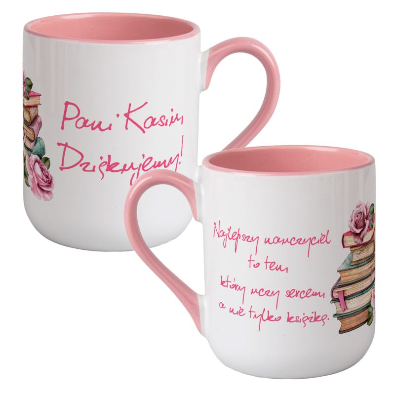 Kubek kawowy duży 330ml z kolorowym uszkiem i wnętrzem dla nauczyciela- "Najlepszy Nauczyciel Dziękujemy".