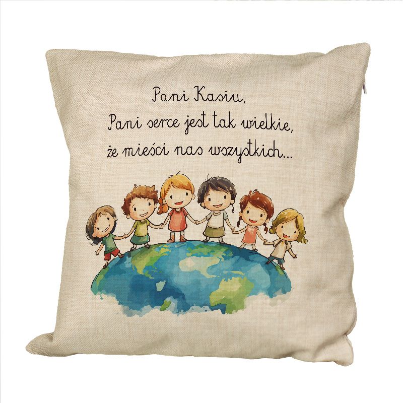 Urocza poduszka z piękną grafiką dla nauczyciela. Jeśli chcesz obdarować oryginalnym prezentem, to ta poduszka będzie idealnym upominkiem z tej właśnie okazji. Idealnie wpasuje się w tradycyjne oraz nowoczesne wnętrza. Podaruj fajny gift zamiast tradycyjnych kwiatów, nie kupisz takiej w sklepie. Dzień nauczyciela to wyjątkowy dzień, w którym chcemy wyrazić wdzięczność dla naszych profesorów, nasza poduszka będzie świetnym prezentem z tej okazji i na długo pozostanie w pamięci.