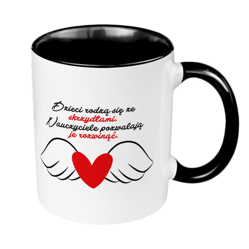 Kubek 330 ml kolorowy na dzień nauczyciela "Dzieci rodzą się ze skrzydłami, nauczyciele pozwalają je rozwinąć".