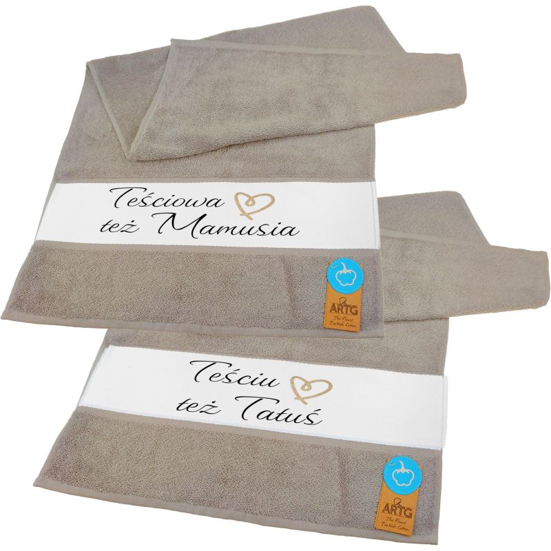 Zestaw 2 ręczników 50 x 100cm "Teściowa też Mamusia, Teściu też Tatuś"- wybierz kolor.