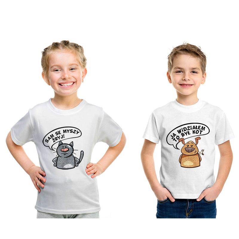 Zestaw koszulek dziecięcych "Kot i pies" - krótki rękaw.