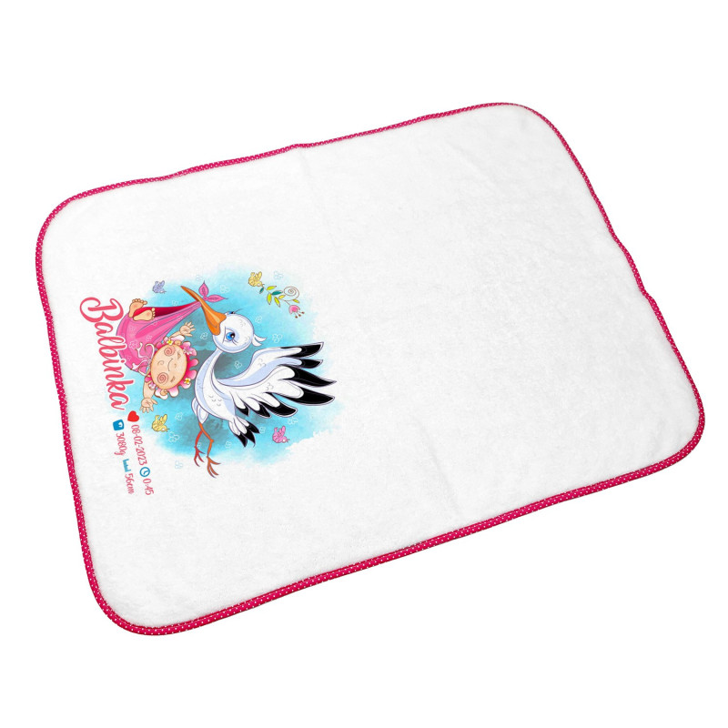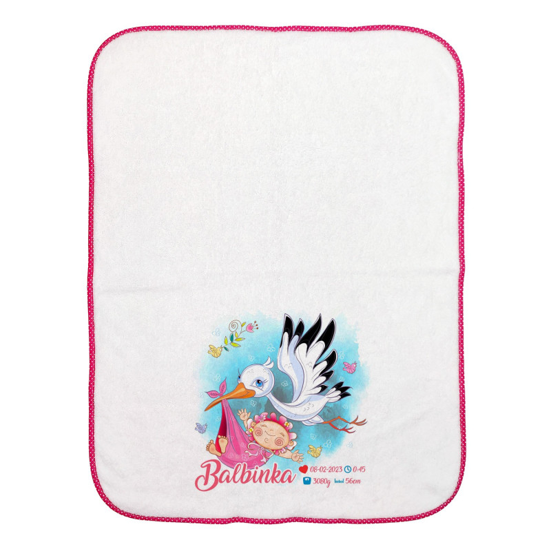 Kocyk z imieniem dla noworodka z metryczką-bocian.