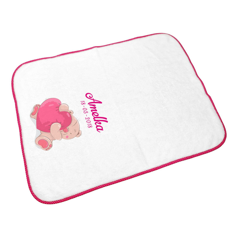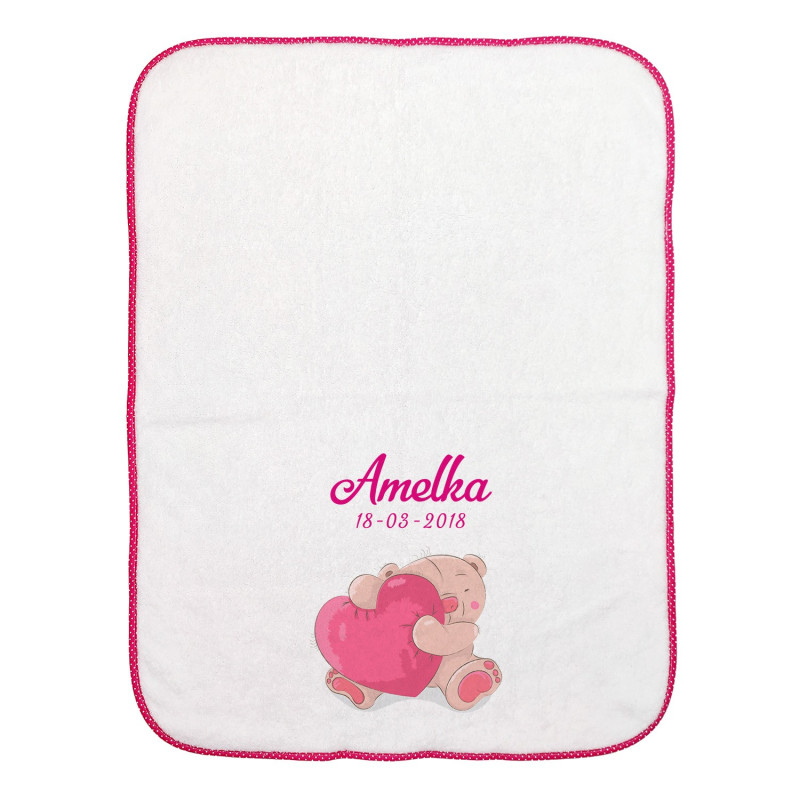 Kocyk dla dziewczynki z imieniem dla noworodka - Miś.