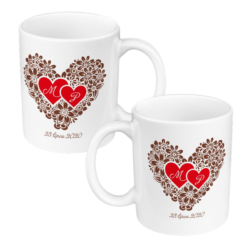 Zestaw Kubków z nadrukiem (sublimacja). Idealny na prezent ślubny, bądź nagrodę w zabawach oczepinowych.
