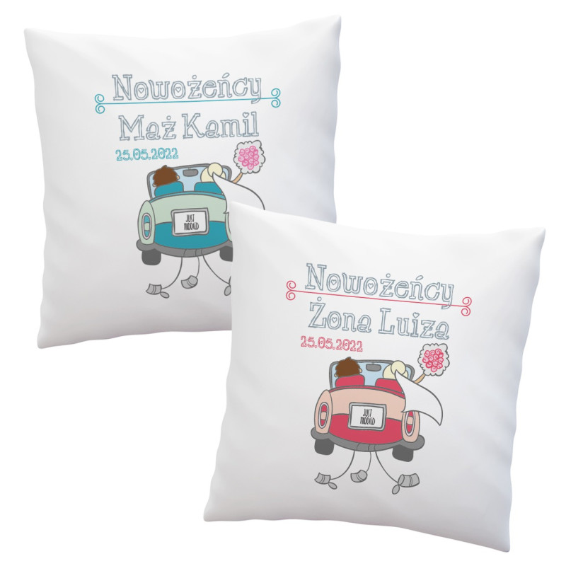 Zestaw Pluszowych poduszek dla nowożeńców - idealny dodatek do prezentu ślubnego.