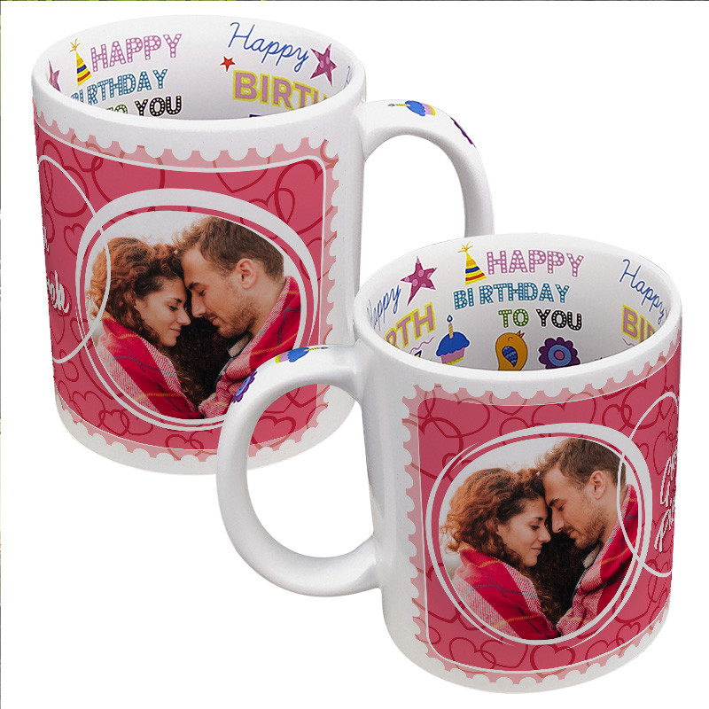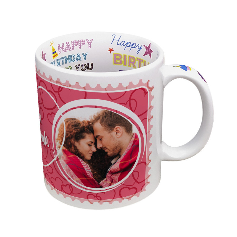 Kubek 330 ml z wnętrzem "Happy Birthday" z grafiką dla zakochanych- super prezent urodzinowy.