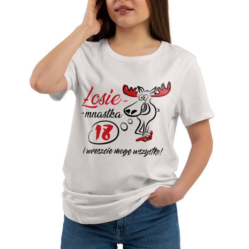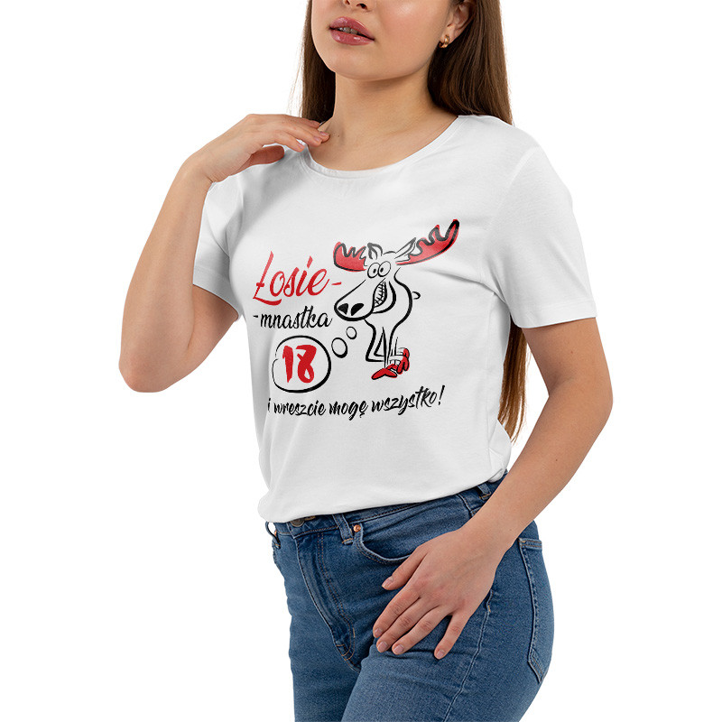 Koszulka damska taliowana z 18 okazji urodzin "Łosiemnastka".