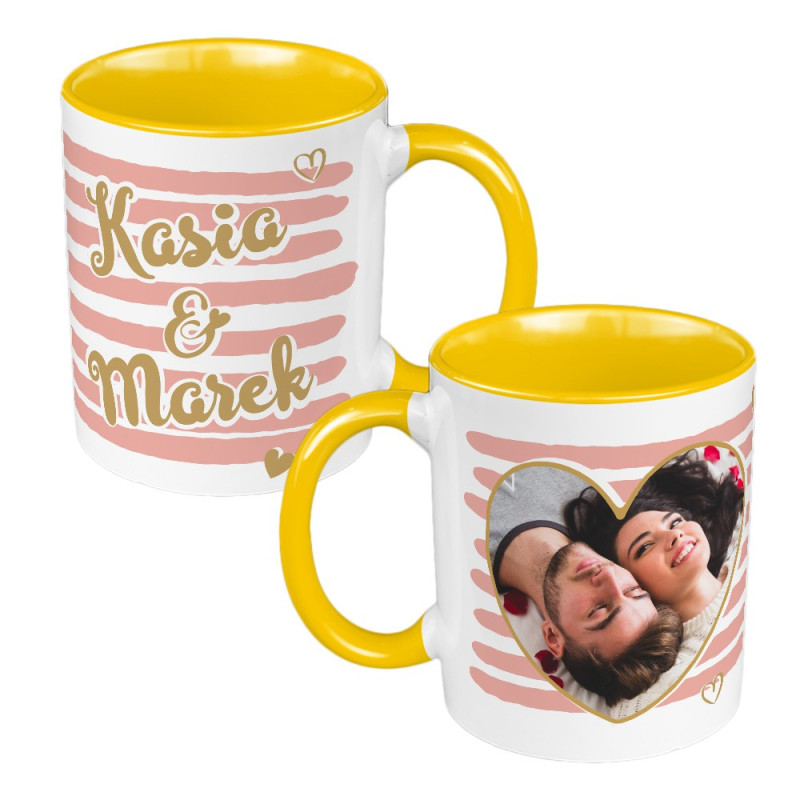 Kubek z kolorowym wnętrzem oraz uszkiem ze zdjęciem, grafiką lub tekstem (sublimacja).