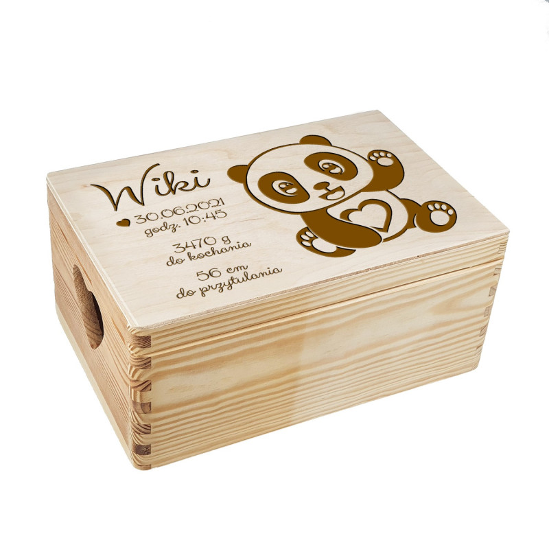Nie zapomnij zapisać swojej personalizacji, aby móc dodać ją do koszykaPudełko wspomnień - prezent z okazji narodzin z pandą- pamiątka.