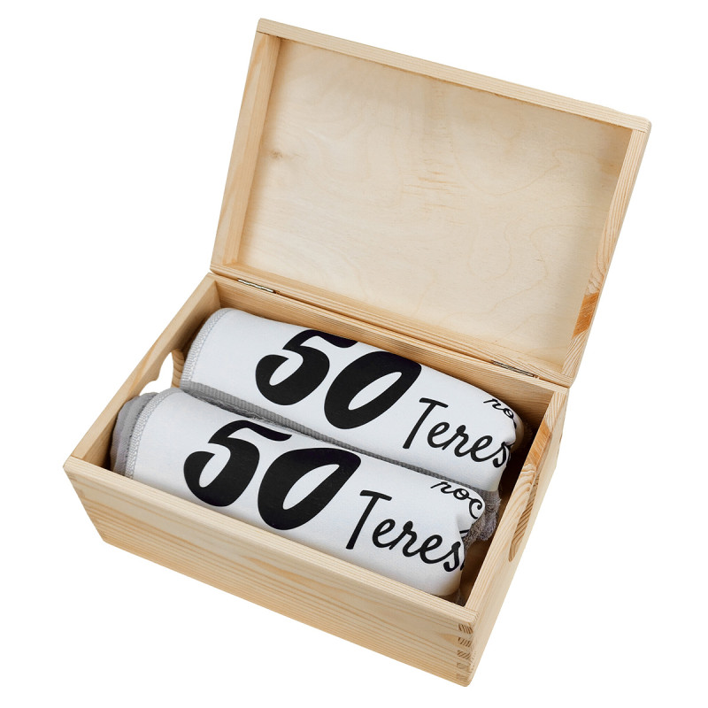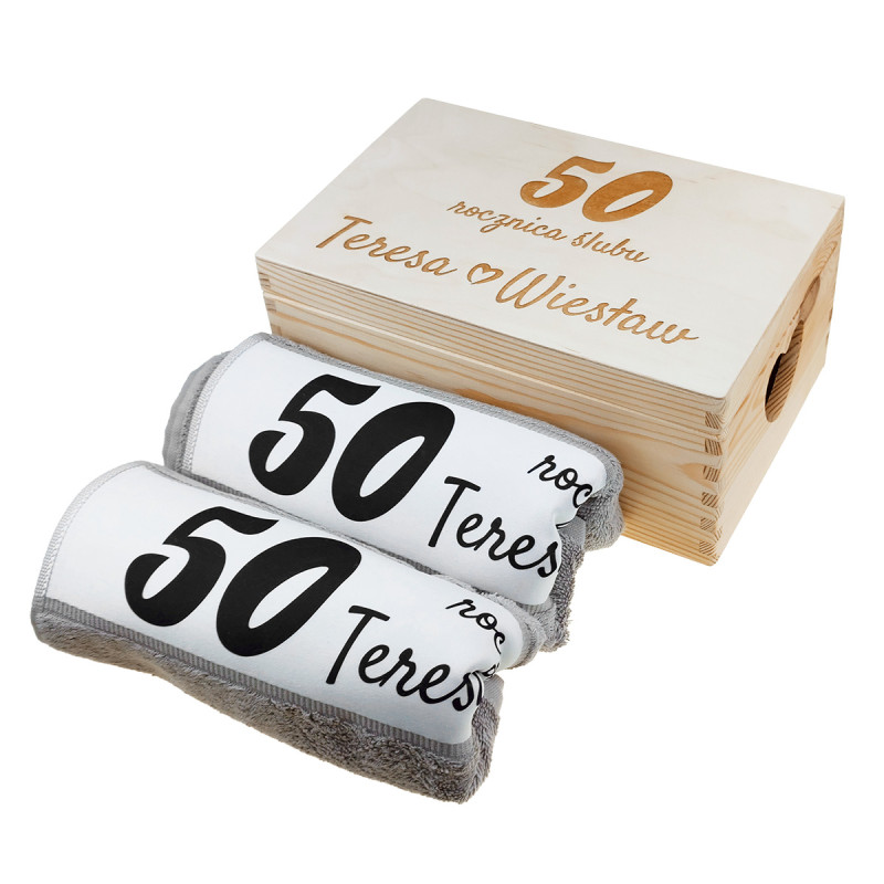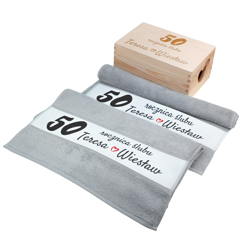 Zestaw na rocznicę ślubu - małżeński kuferek wspomnień oraz zestaw dwóch ręczników 50 x 100 cm.