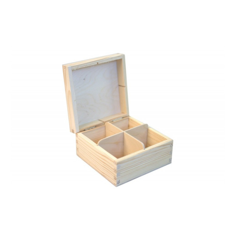 - pudełko z drewna sosnowego z 4 przegrodami (nie zawiera herbaty)