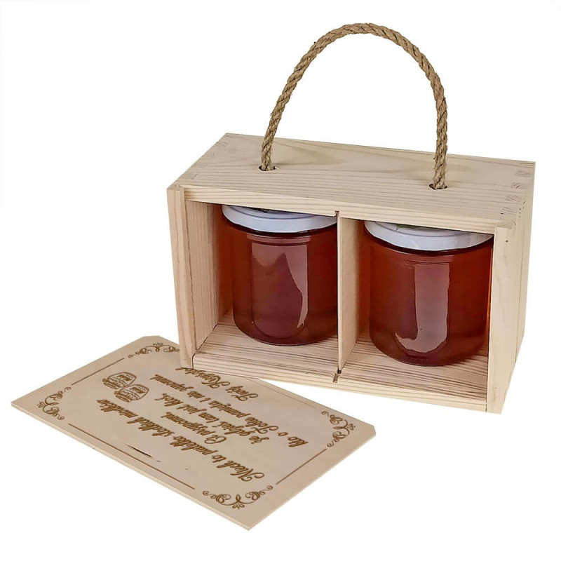 Pudełko drewniane na 2 słoiczki miodu.