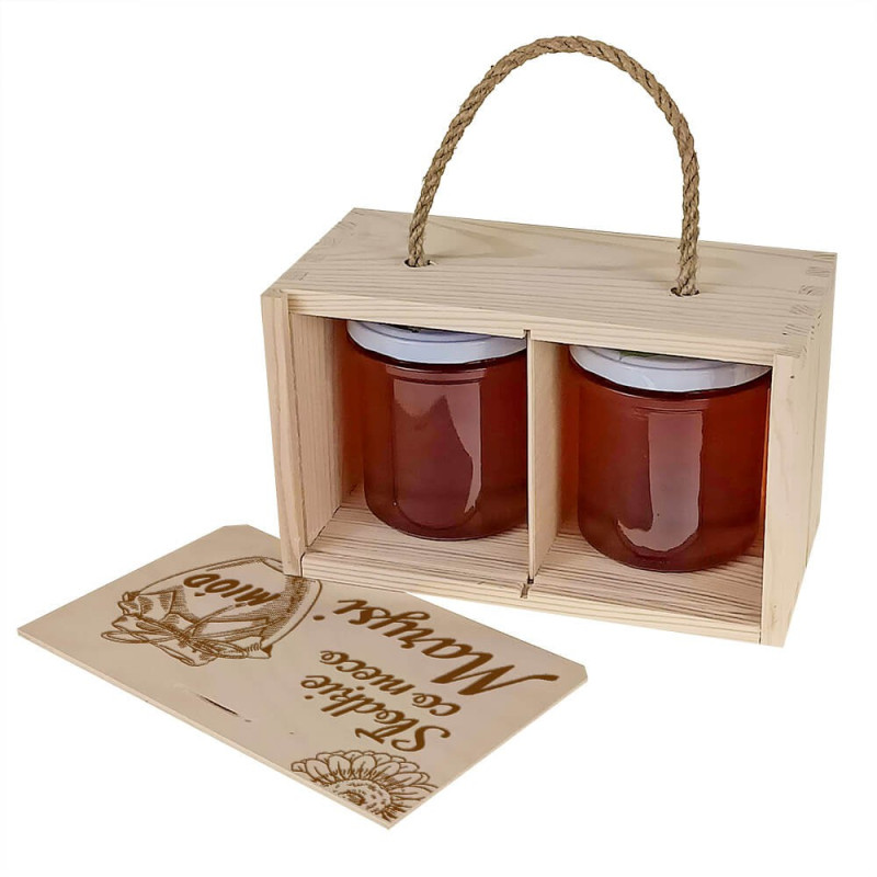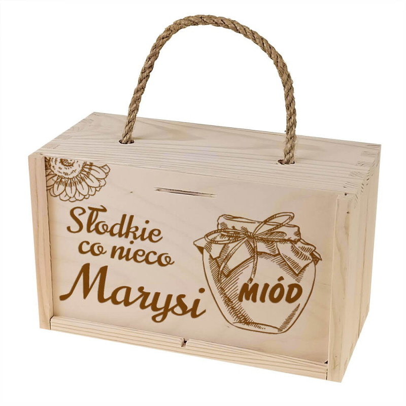 Pudełko drewniane na 2 słoiczki miodu z grawerem - Słodkie co nieco z imieniem.