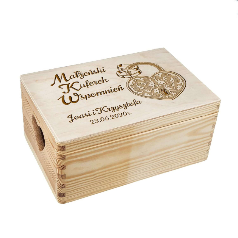 Małżeński kuferek wspomnień - prezent z okazji rocznicy - z grafiką kłódki.