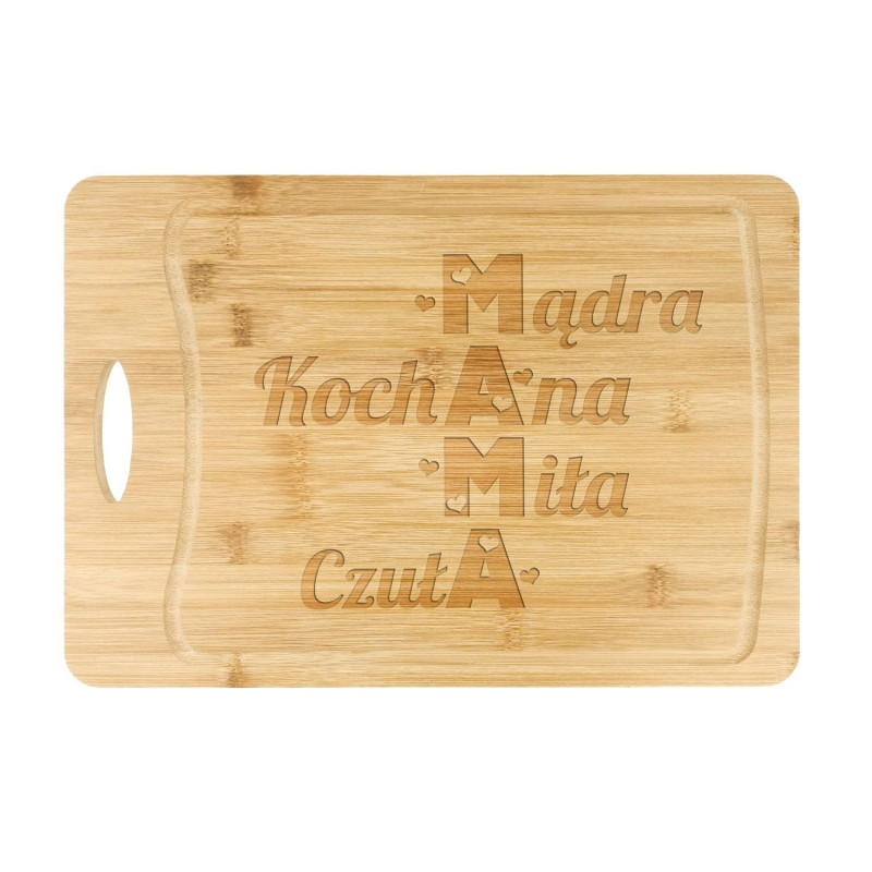 Deska do krojenia, bambusowa z grawerem krzyżówka- prezent dla mamy.