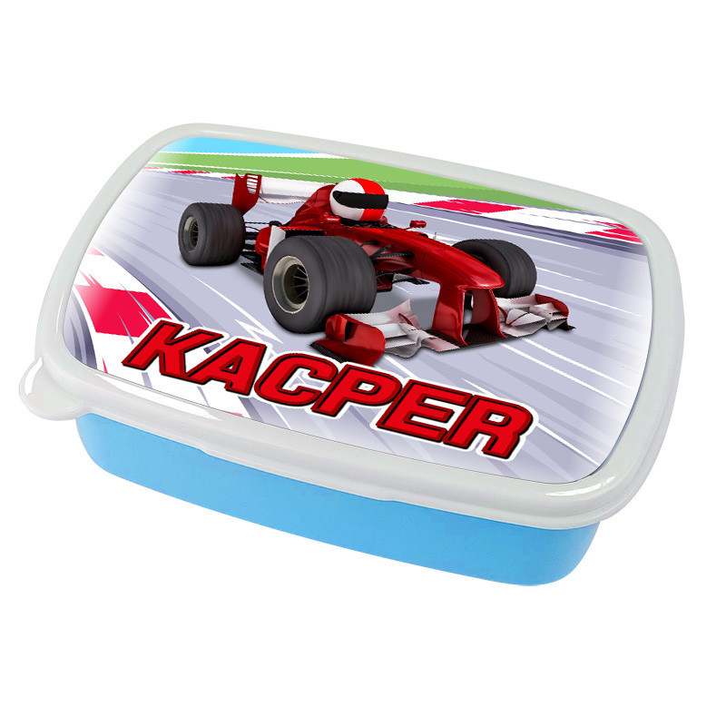 Pudełko na kanapki - śniadaniówka "Wyścigówka" z imieniem Twojego dziecka.