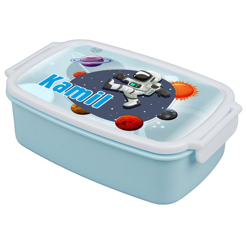 Pudełko na kanapki - śniadaniówka "Astronauta"- wybierz swój wzór- pudrowa niebieska z zapięciami oraz przegródką.