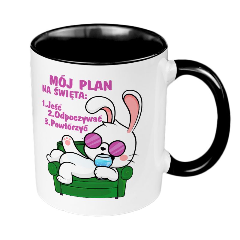 Kubek „Mój plan na święta: jeść, odpoczywać, powtórzyć” – Wielkanocny must-have! 🐰🌸