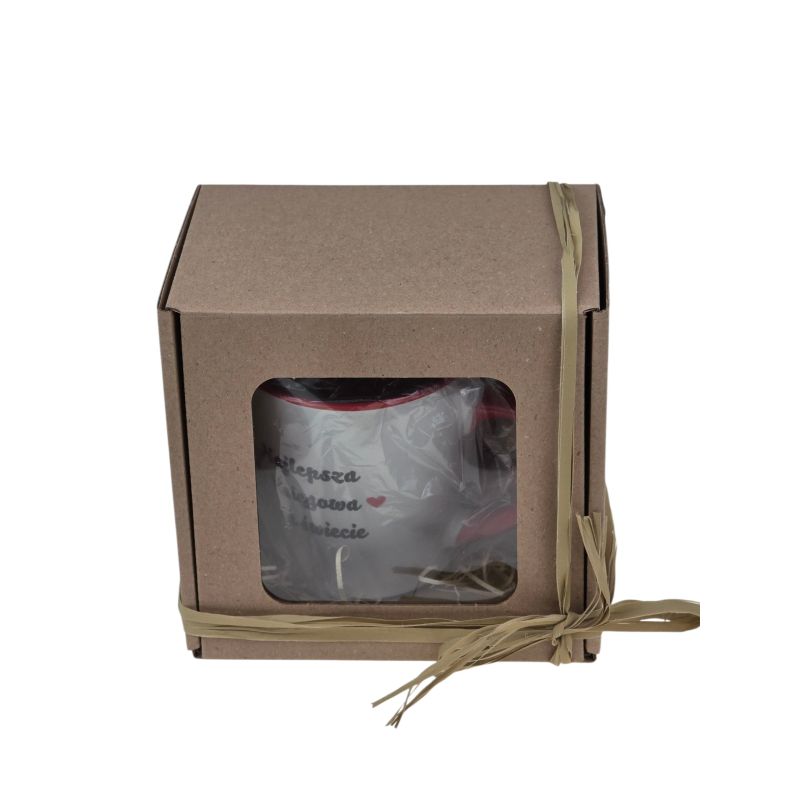 🎁 Ozdobne pudełko prezentowe na kubek – z okienkiem i rafią