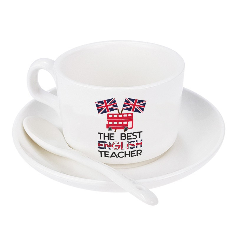 Kubek 330 ml kolorowy z nadrukiem "The best english teacher" - na dzień nauczyciela.