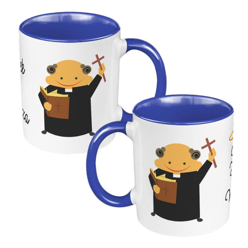 Kubek 330 ml kolorowy dla księdza- Święty kubek Księdza z imieniem- prezent z okazji Dnia Nauczyciela.