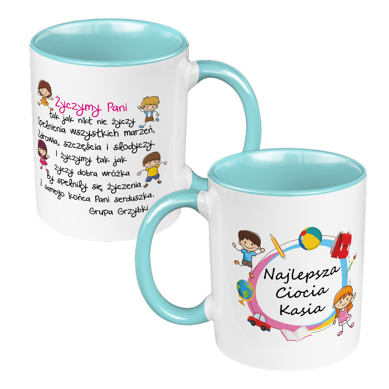 Kubek 330 ml kolorowy dla przedszkolanki - Najlepsza Ciocia Kasia 1.