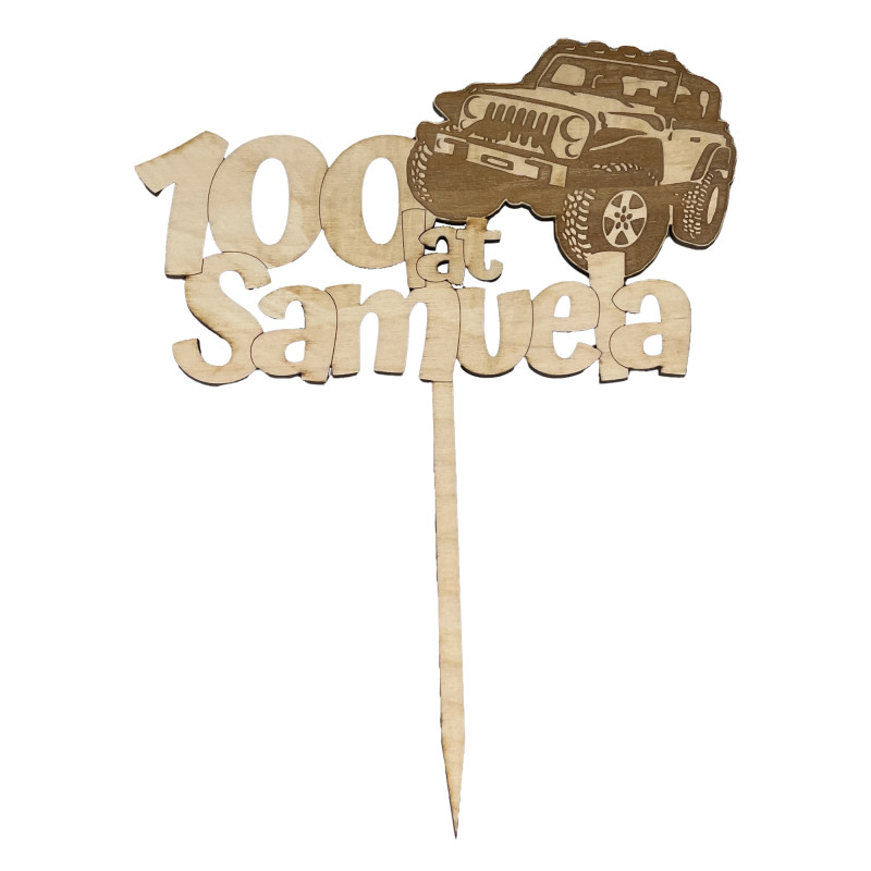 Topper na tort na urodziny - z imieniem solenizanta- dla miłośnika terenowych samochodów.