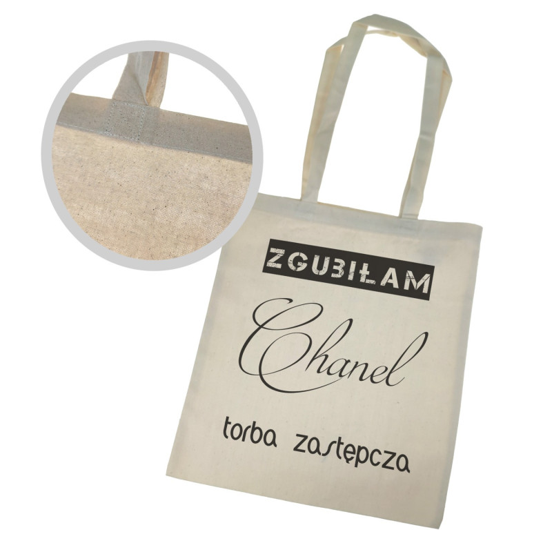 Torba ekologiczna bawełniana z długimi uszami z tekstem "Zgubiłam Chanel"