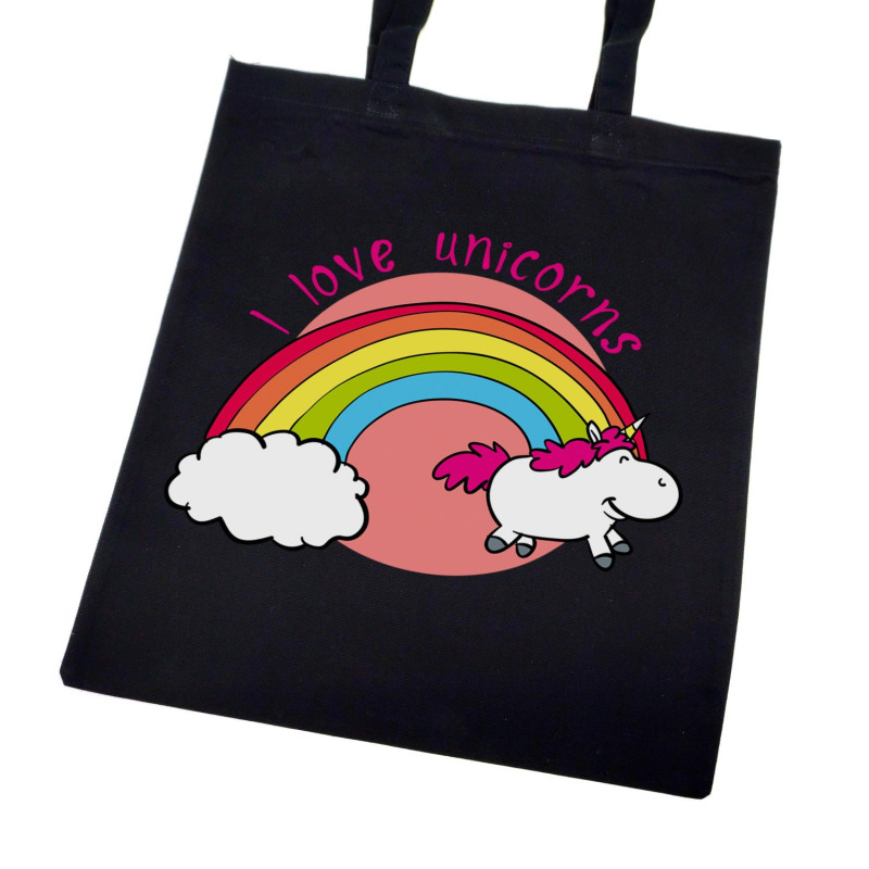 Super torba z długimi uszami i zamkiem - " I love unicorns ".