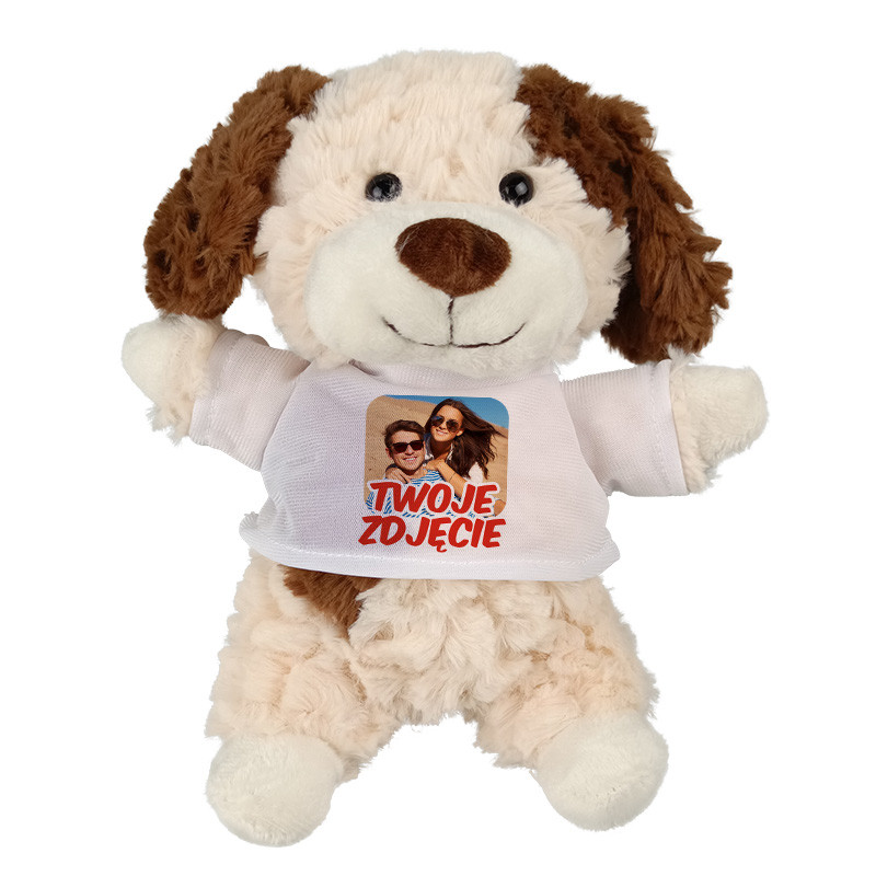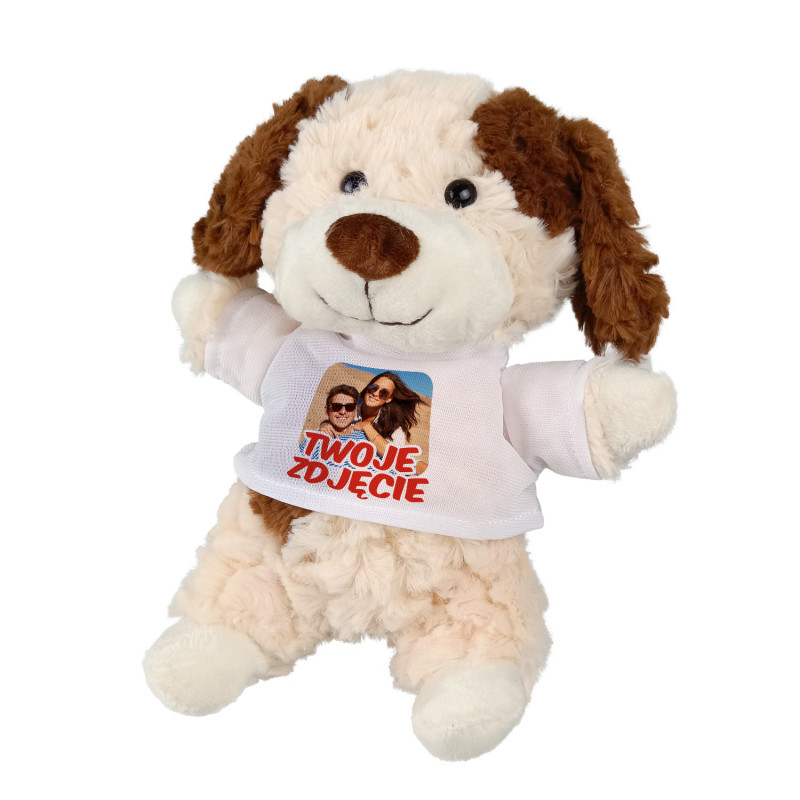 Puszysty piesek z Twoją grafiką, zdjęciem czy tekstem- 18cm.