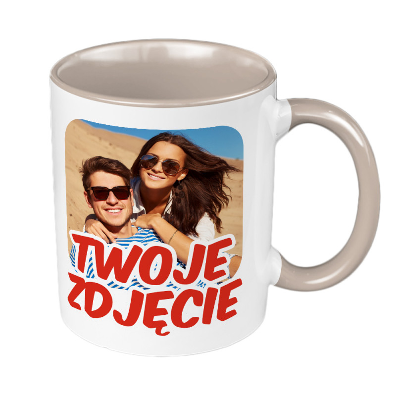 Kubek kolorowy ze zdjęciem, grafiką lub tekstem Klienta - beżowy.