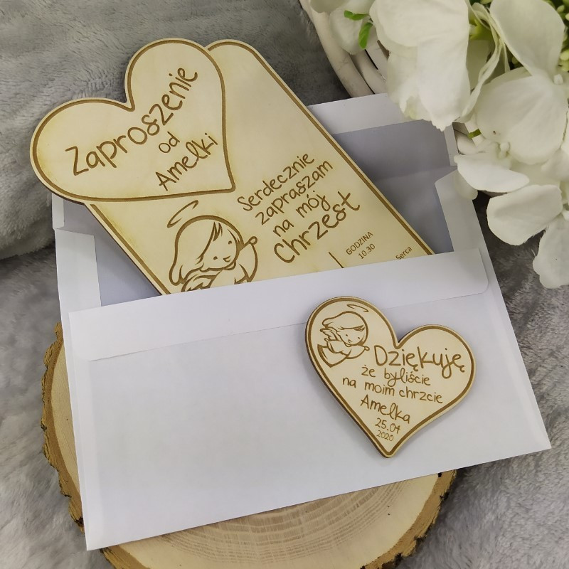 Drewniane magnesy na lodówkę - podziękowania dla gości - chrzest, komunia - serduszko z...